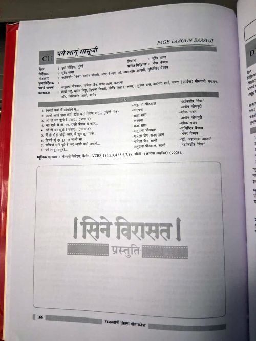 This encyclopedia for Rajasthani films (in Hindi) was compied by MD Soni. It has substantially same kind of information as Hindi Film Geet Kosh but for Rajasthani films. It covers 212 films from 1942 to 2022. It has lots of illustrations.