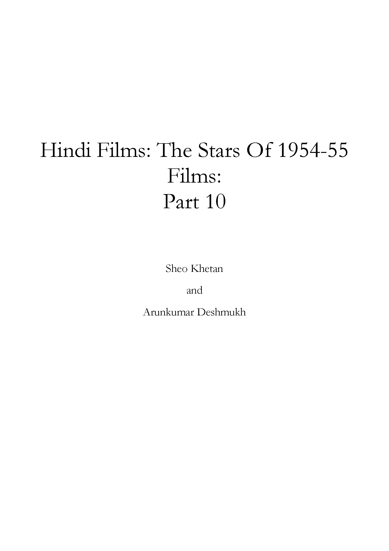 Hindi Films: The Stars Of 1954-55 Films: Part 10