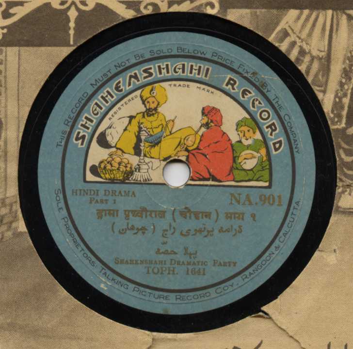 My father had told me that he bought them in Lahore around 44-45. The records say SHAHENSHAHI RECORD on the label and have an alif-laila type photo on them. Consulting the book 'The 78 r.p.m. Record Labels of India' by Michael Kinnear, I found out that this record company recorded hunderds of records from August 1934 to about 1944, when they closed down.