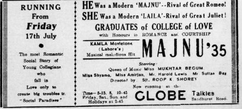 In Majnu '35. The picture was so successful that from then this Panjabi Christian was known as Majnu. He acted in many Panjabi movies and Hindi movies, especially with I S JOhar.