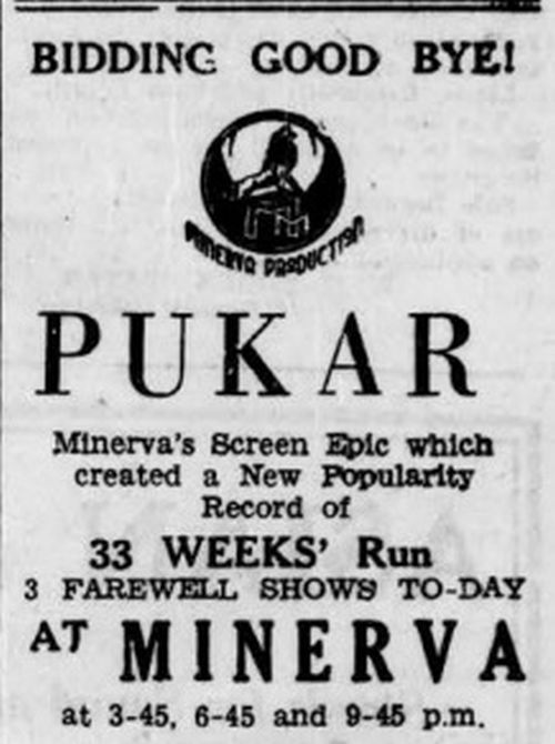 Ran for 33 weeks at Minerva, a film by Minerva, last day March 20, 1940.