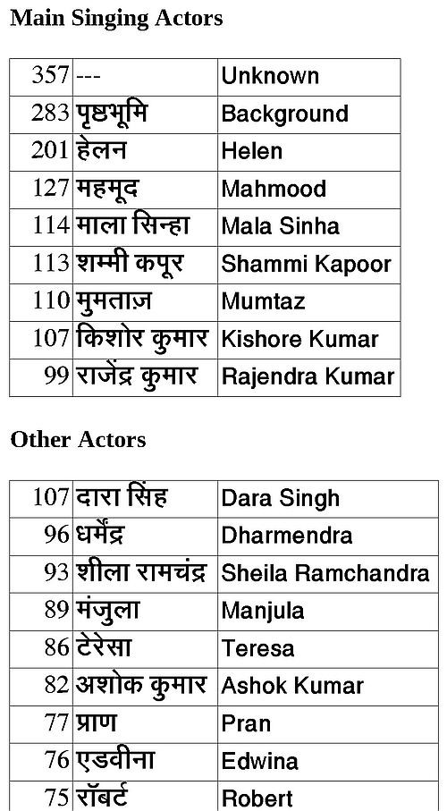 So, in the picturization book (1961-1970), I decided to have two groups. One for those who sang the main lines on screen and another for the rest.