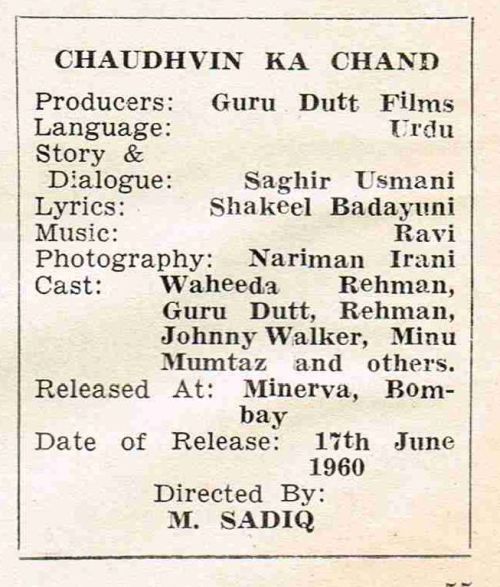 Released at Minerva, Bombay on June 17, 1960.