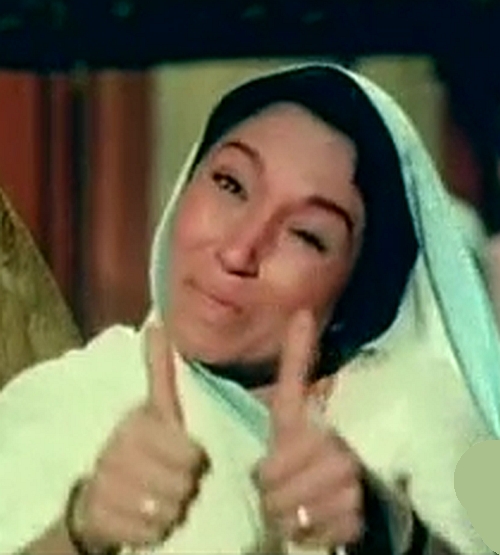 The gesture that Lalita Pawar is showing in Gopi (1970) is seen often Hindi films. Basically means that this upraised thumb is all you are getting, or not even that.