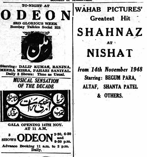 Some films running in Lahore on November 10th 1948.