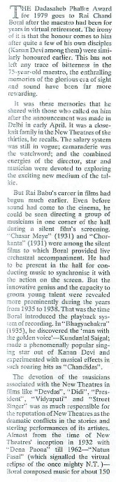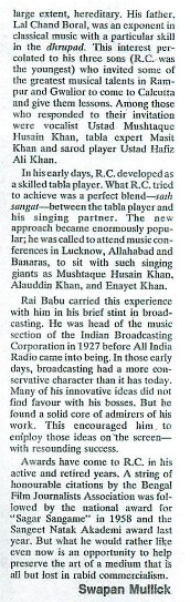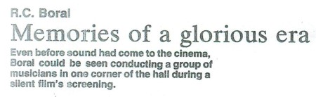 From time to time people send me stuff to put on my website. Earlier people sent me all kinds of stuff and I was very choosy in selecting what to put on. Now most people know about my choices in Hindi and Indian films. I do not need to select any more. Here is an article on the legendary MD, R C Boral sent by one of his fans.
