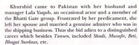 Khurshid went to Pakistan with her first husband, Lala Yaqoob. I believe that this was a different Yaqoob.