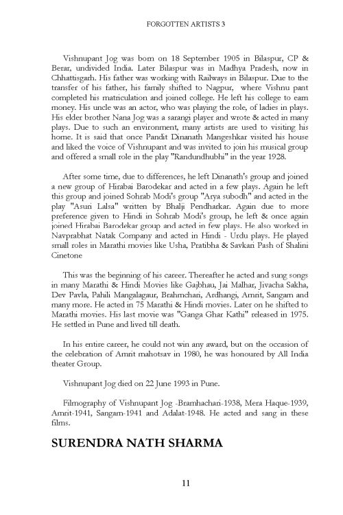 Tens of thousands of artists have contributed to Hindi cinema since 1931. Barring a few famous ones, other are long forgotten and are destined for obscurity. By sheer determination the author has obtained information on many such artists.